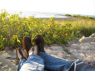 The town itself was breathtakingly beautiful… it was right on a waterfront with a beautiful beach (those are our feet watching the sunset). As the Hubster acclimatized himself to small-town living I started a list of “identifiers” that tell you you’re in a small town. Here’s what I found: